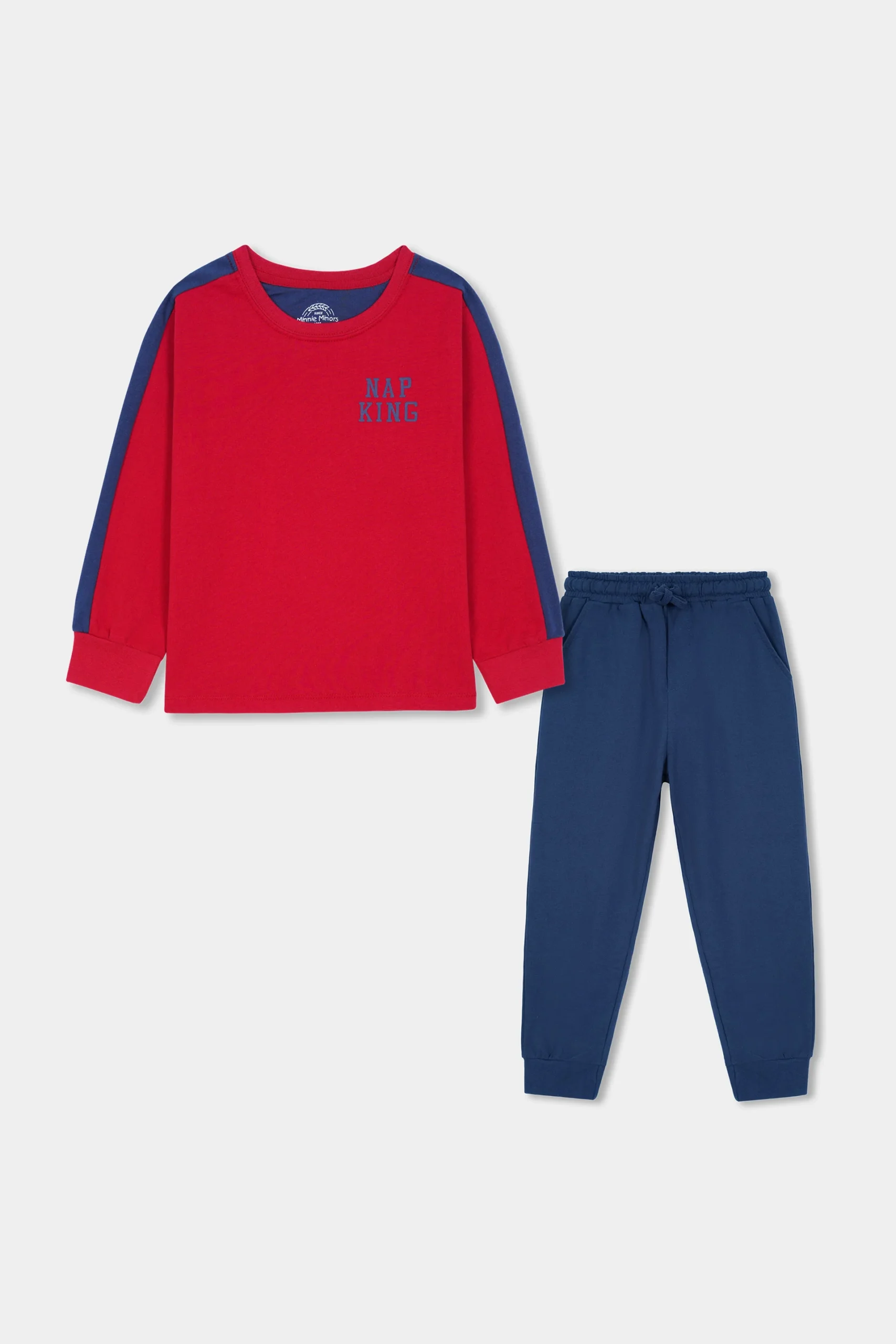 Fun “NAP KING” Graphics: The playful text and bold color combination (Red and Navy) add personality, making him excited to wear his New Pajamas.