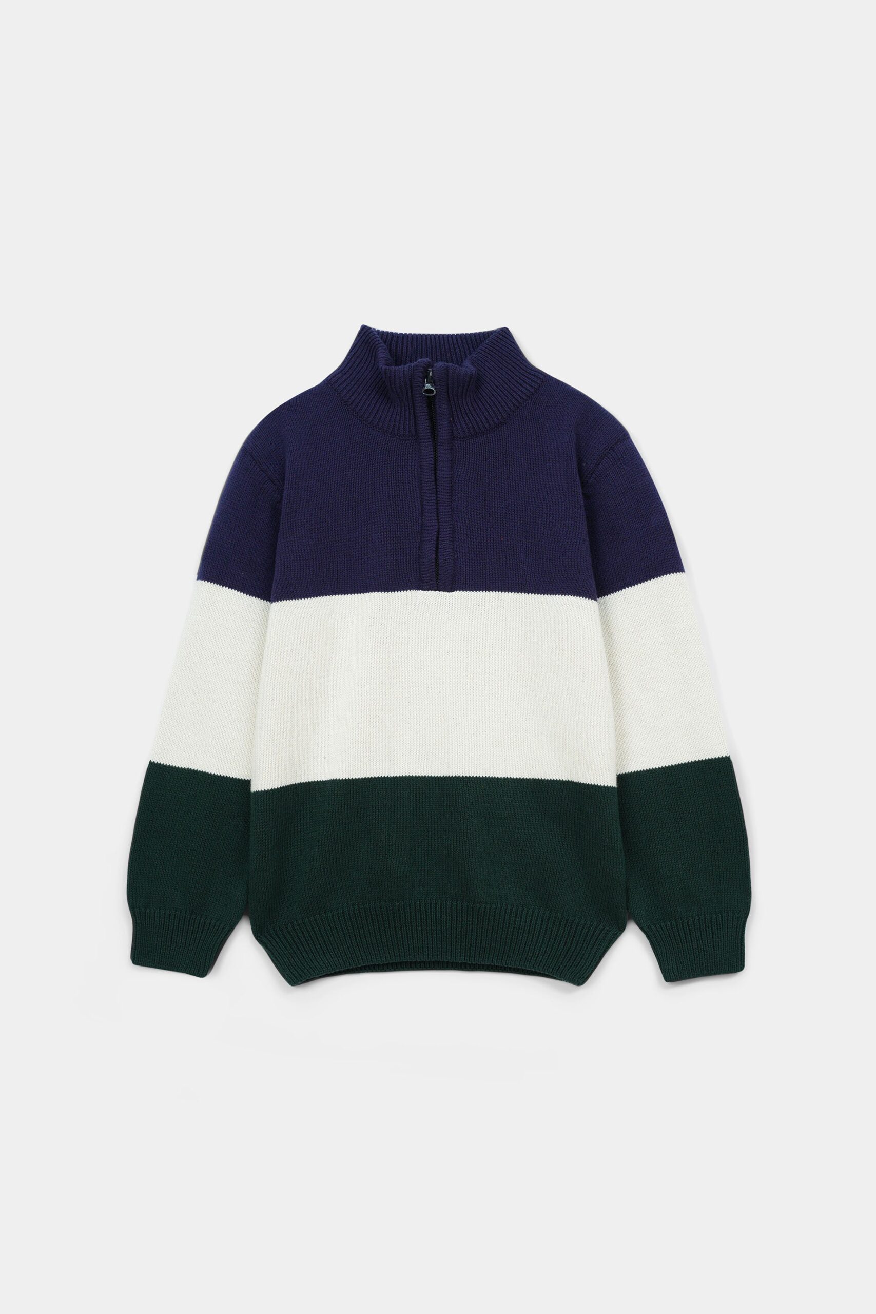 Boy’s Navy Green & Cream Zip Sweater