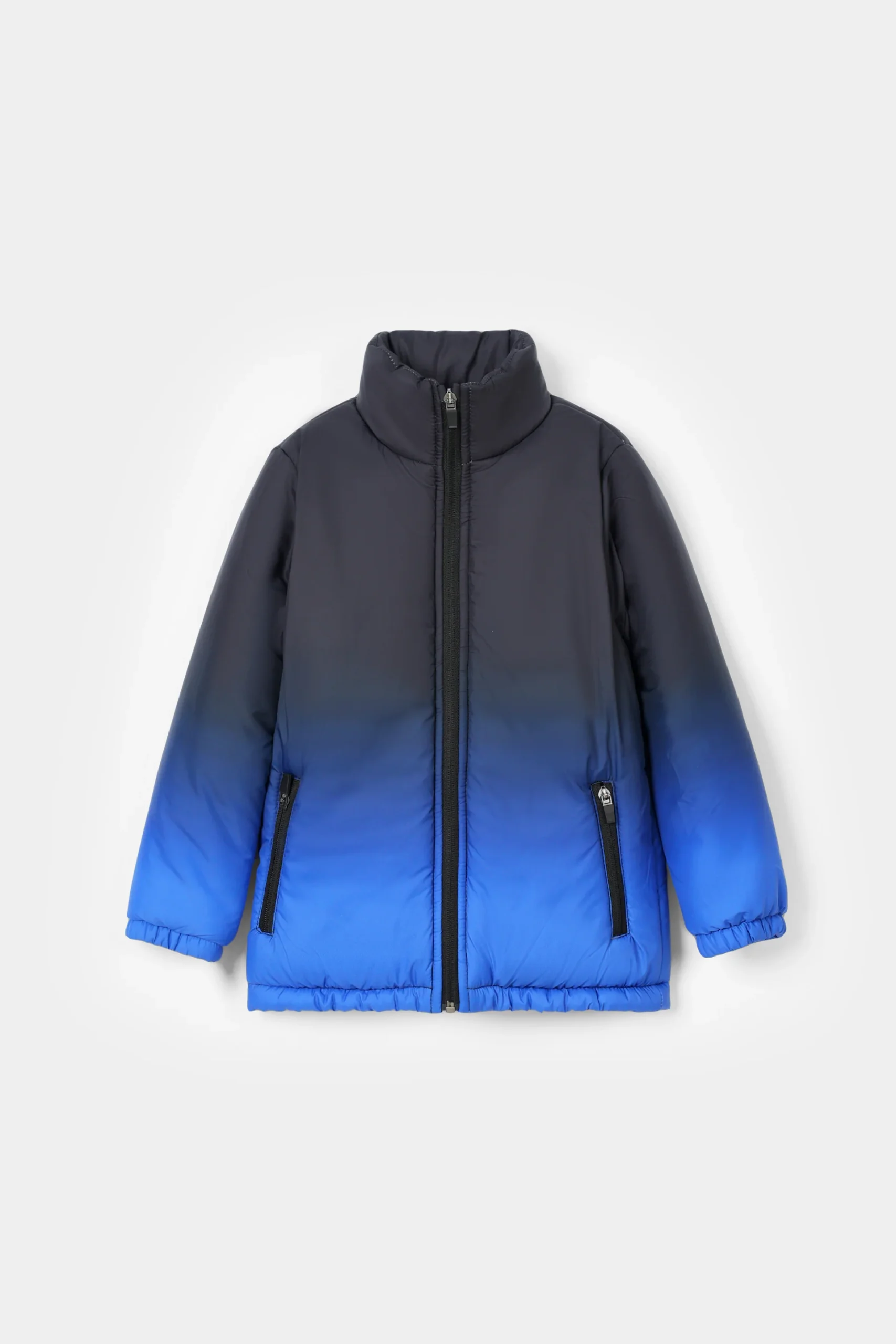 Make a stylish statement while staying protected from the elements with this dynamic Boy’s Ombre Puffer Jacket. Featuring a modern Navy to Electric Blue gradient design, this Insulated Winter Coat offers superior warmth without the bulk, making it perfect for active kids. The high mock neck and elasticated cuffs provide excellent cold defense, while the lightweight feel ensures unrestricted movement. Equip your child for cold weather adventures with this eye-catching and practical Kids Padded Puffa Coat—combining style, insulation, and durability in one essential piece.
